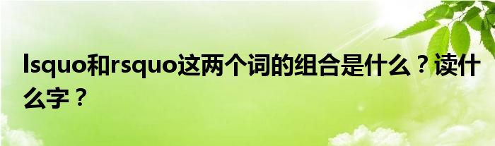 关于lsquo和rsquo这两个词的组合是什么?读什么字?这个很多人还不知道,今天菲菲来为大家解答以上的问题,现在让我们一起来看看吧!