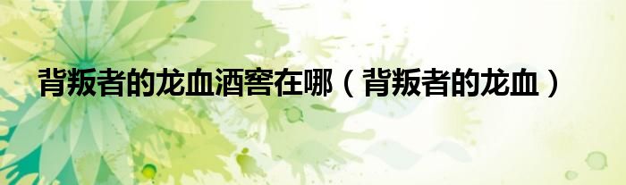 关于背叛者的龙血酒窖在哪,背叛者的龙血这个很多人还不知道,今天菲菲来为大家解答以上的问题,现在让我们一起来看看吧!