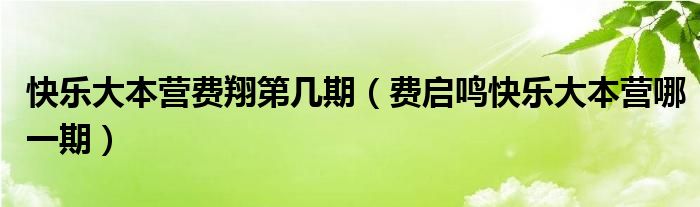 大家好,小晋来为大家解答以下问题,关于快乐大本营费翔第几期,费启鸣快乐大本营哪一期很多人还不知道,今天让我们一起来看看吧!