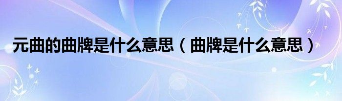 关于元曲的曲牌是什么意思,曲牌是什么意思这个很多人还不知道,今天菲菲来为大家解答以上的问题,现在让我们一起来看看吧!