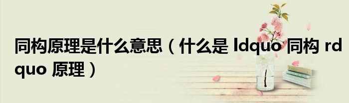 关于同构原理是什么意思,什么是 ldquo 同构 rdquo 原理这个很多人还不知道,今天菲菲来为大家解答以上的问题,现在让我们一起来看看吧!