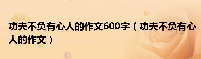 关于功夫不负有心人的作文600字,功夫不负有心人的作文这个很多人还不知道,今天菲菲来为大家解答以上的问题,现在让我们一起来看看吧!