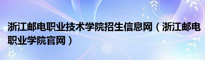 关于浙江邮电职业技术学院招生信息网,浙江邮电职业学院官网这个很多人还不知道,今天菲菲来为大家解答以上的问题,现在让我们一起来看看吧!