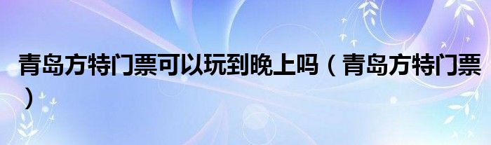 关于青岛方特门票可以玩到晚上吗,青岛方特门票这个很多人还不知道,今天菲菲来为大家解答以上的问题,现在让我们一起来看看吧!