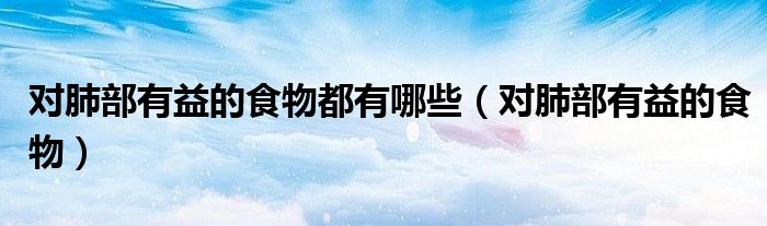 关于对肺部有益的食物都有哪些,对肺部有益的食物这个很多人还不知道,今天菲菲来为大家解答以上的问题,现在让我们一起来看看吧!