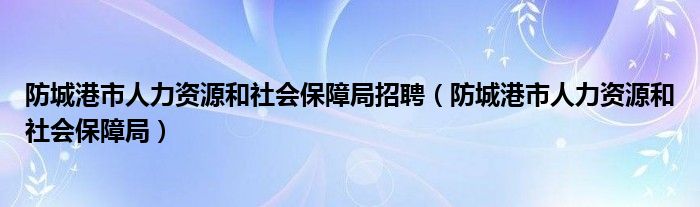 防城港市人力资源和社会保障局招聘(防城港市人力资源和社会保障局)
