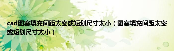 关于cad图案填充间距太密或短划尺寸太小,图案填充间距太密或短划尺寸太小这个很多人还不知道,今天菲菲来为大家解答以上的问题,现在让我们一起来看看吧!